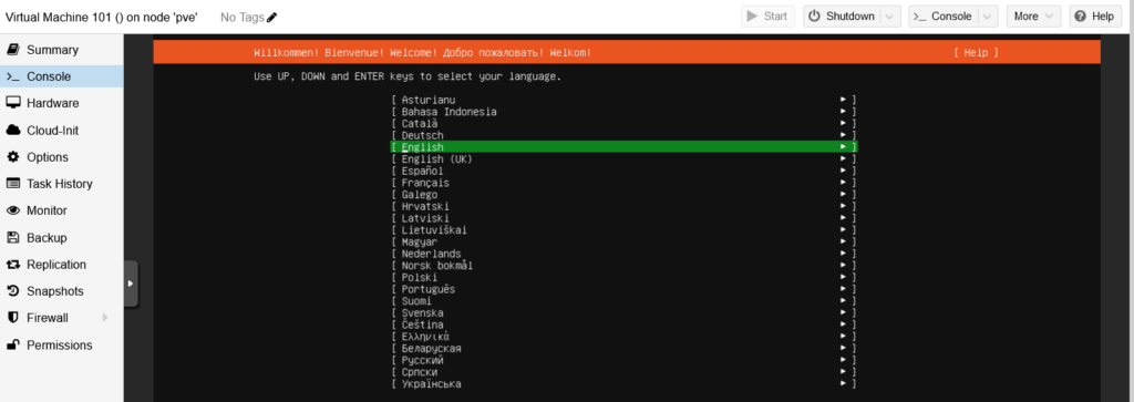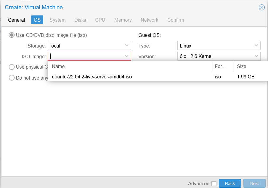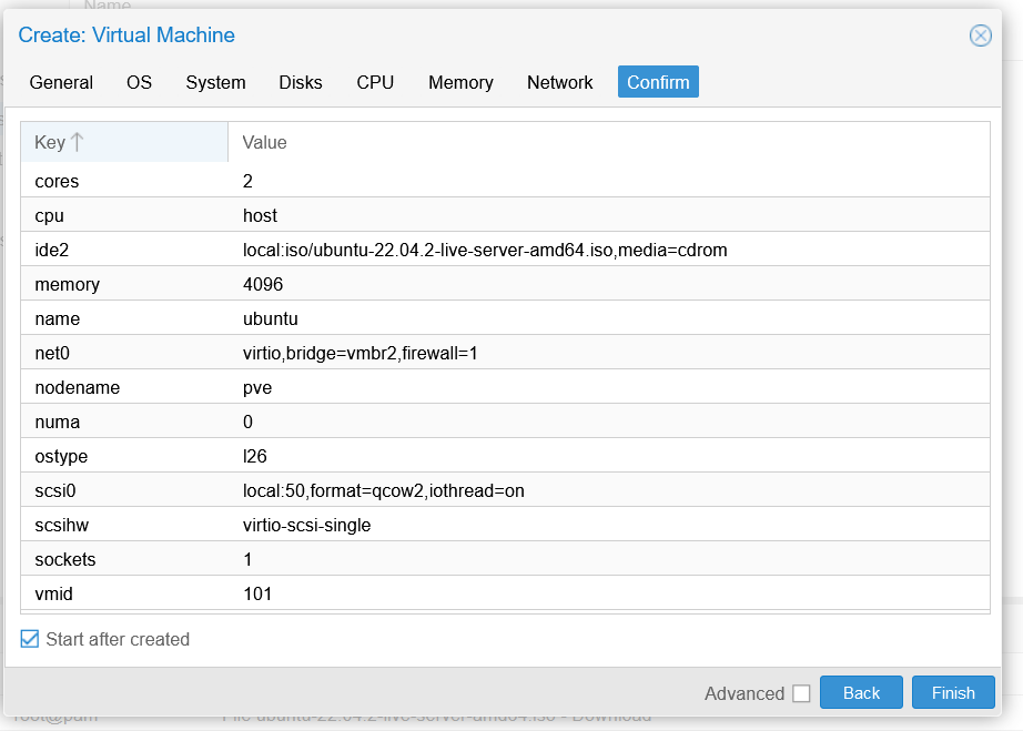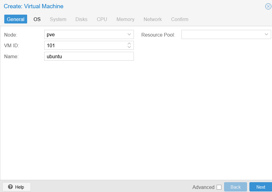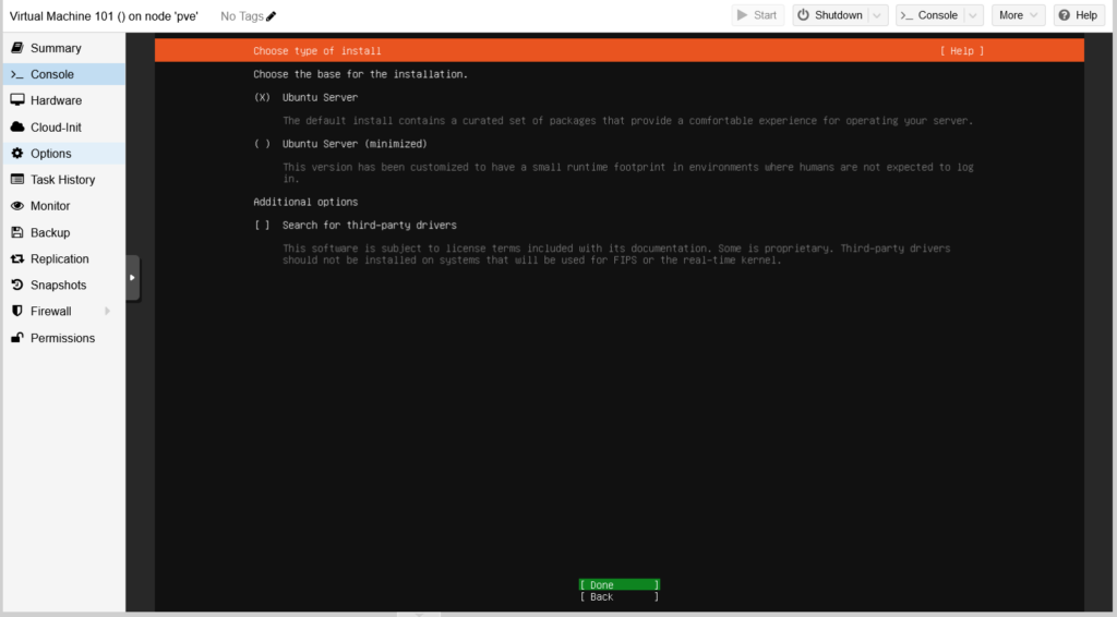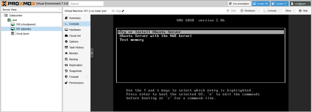 Ubuntu Server virtuaalikoneen luonti Proxmoxissa